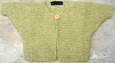 Our soft, one-button butterfly cardigan is easy and elegant. Knit in a super cushy double faced style, it's chunky cushiness is perfect for parties, or picnics! It's easy on, easy off, and is a lightweight yet good insulator, due to both the natural loft of the yarn and the stitch. In short, the perfect baby sweater.