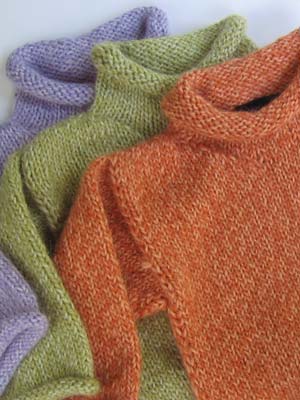 Our Beautiful, soft baby alpaca in an easy-on, easy off rollneck sweater and a matching hat - the perfect sweater set. The rollneck, with it's wide arms, wide body - so it lasts more than a month! Pick any of our three hats - in any one of our fab colors - our signature baby sweater in a wonderful set makes a beautiful handknit gift. (you can add gift wrap at checkout!)