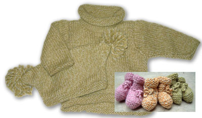 Match up our ultra-soft handknit sweater Hat and booties for the ultimate baby gift. A great set for showers, xmas, or welcome home baby!