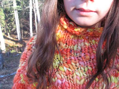 This sunny color combination just smiles at everyone. Incredible tangerine orange and yellow create a poppy-field like wearable work of art in a 100% wool handknit children's sweater. Very soft thick and thin 100% wool keeps you warm as a wood-fired oven. But put it over a velvet jumper and you could wear it to the swankiest event, this handmade sweater is so charming and unusual. A gorgeous children's sweater that defies the logic of duck applique and dog embroidery.
